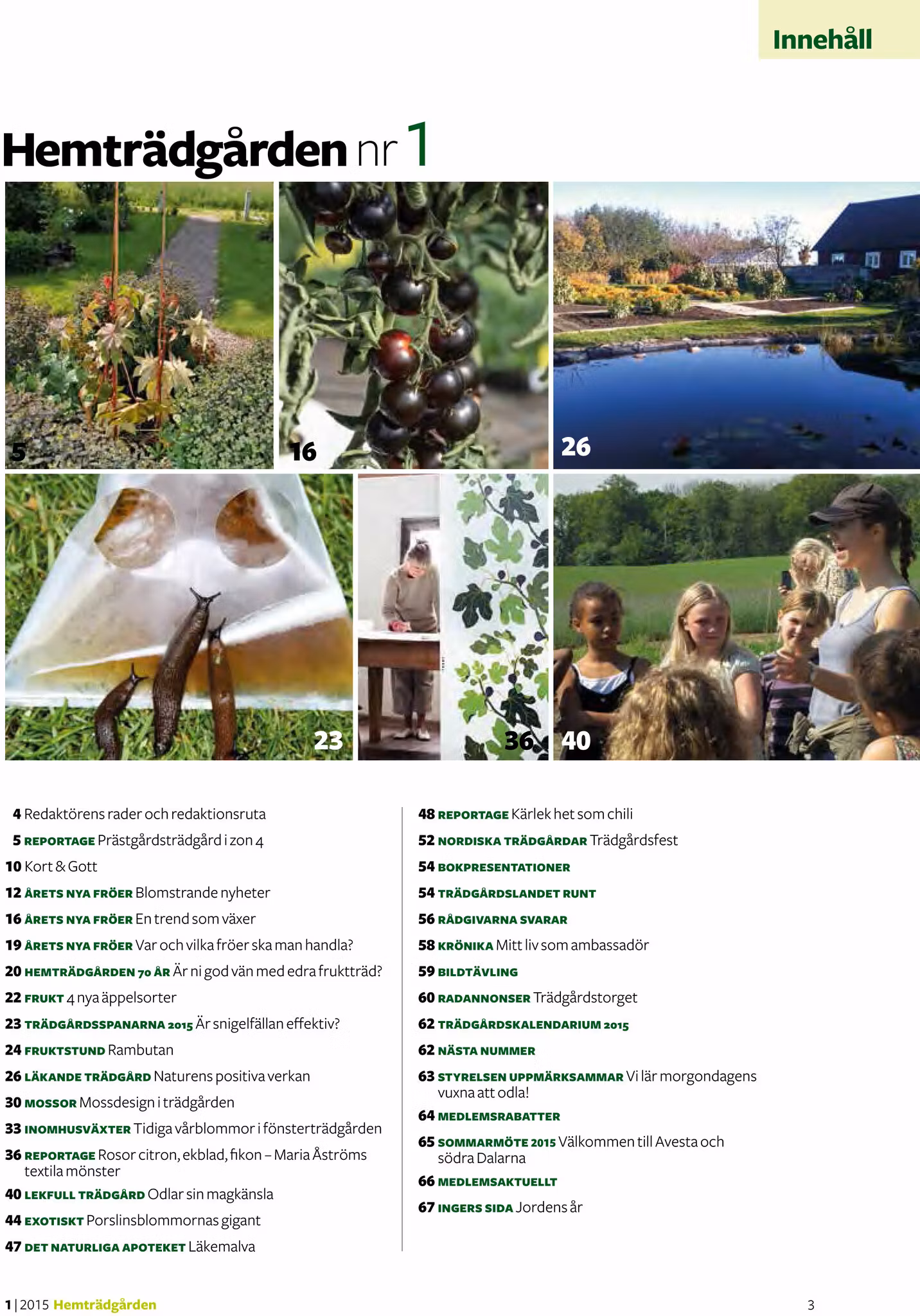 Hemträdgården ges ut av Riksförbundet Svensk Trädgård och ingår som medlemstidning i ett medlemskap hos oss. Hemträdgården är tidningen för dig som älskar trädgård, växter och odling. Här finns läsning både för dig som är nybörjare och för dig som vill få fördjupad kunskap. Varje år kommer Hemträdgården ut med sex fullmatade nummer på 68 sidor.