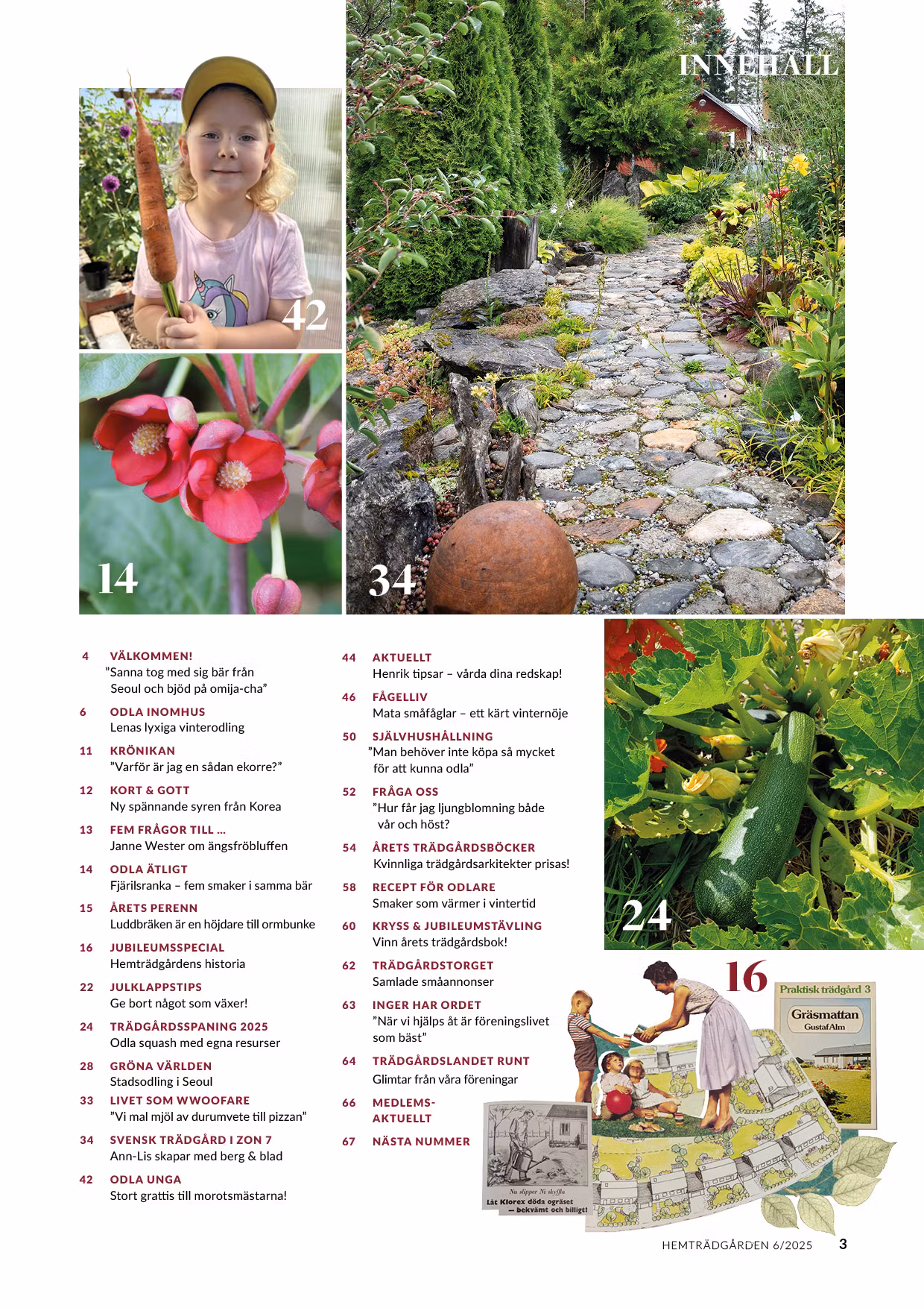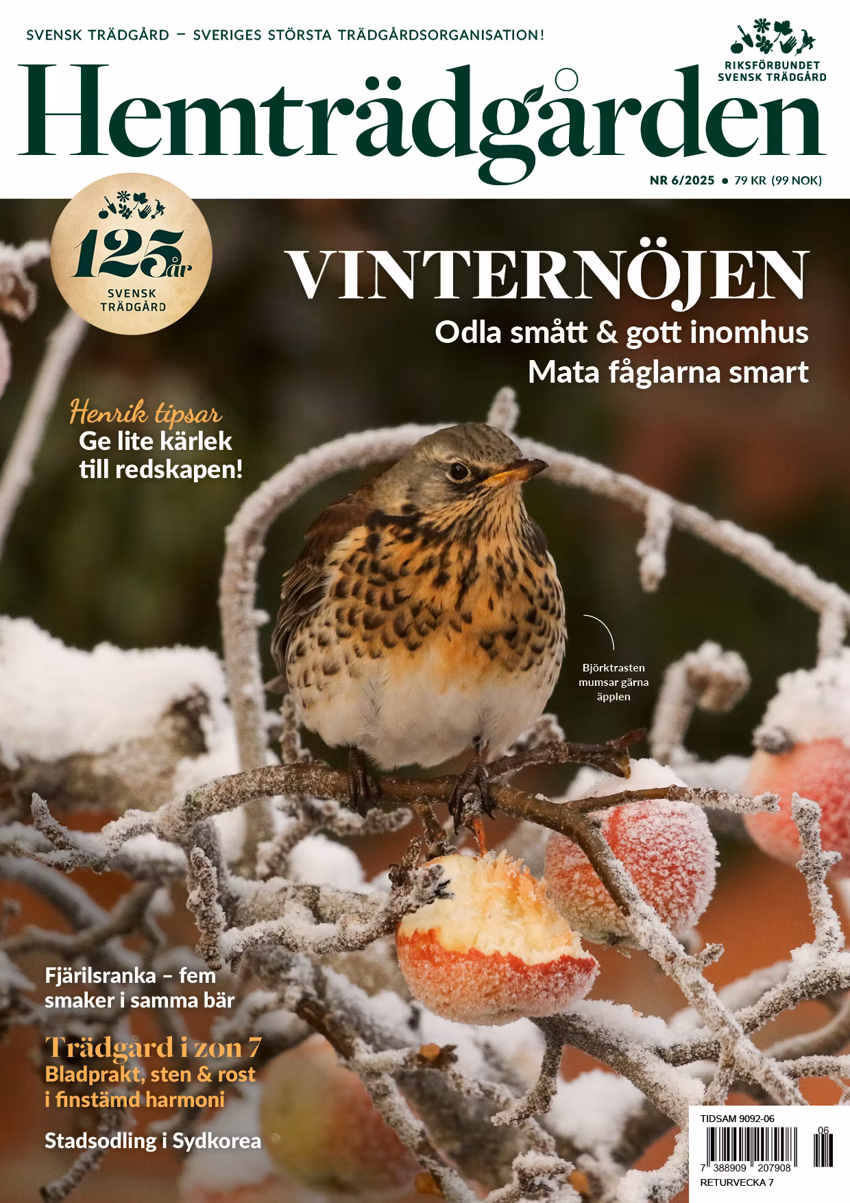 I det här numret får du både besöka en trädgård i zon 7 i Jämtland och spana in stadsodling i Korea. Du får också tips på vintriga nöjen som att odla färska blad och annat gott under extrabelysning, ta hand om redskapen och mata trädgårdens fåglar på ett smart sätt. Åke Truedsson tipsar fjärilsranka som bjuder på bär med fem smaker.