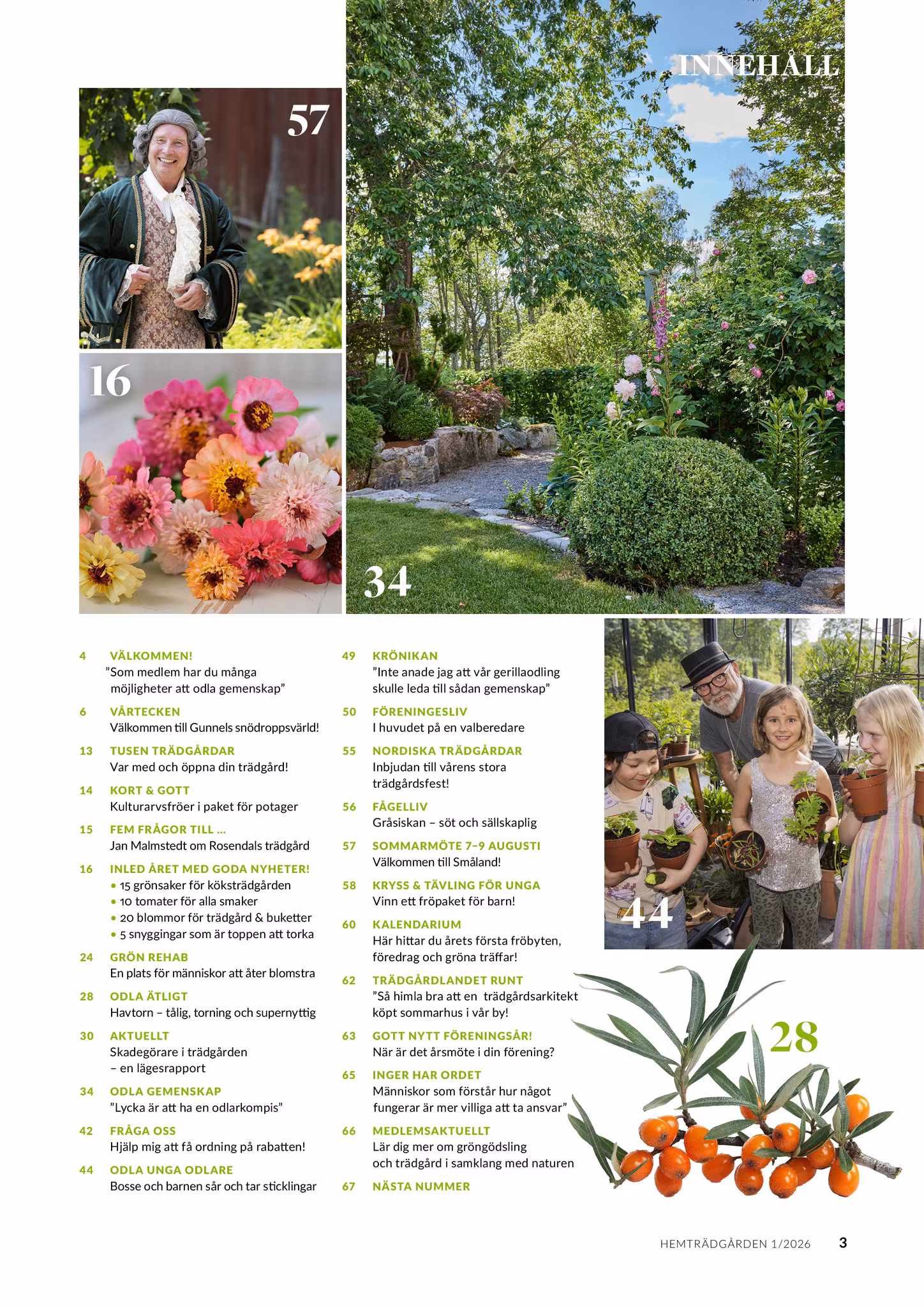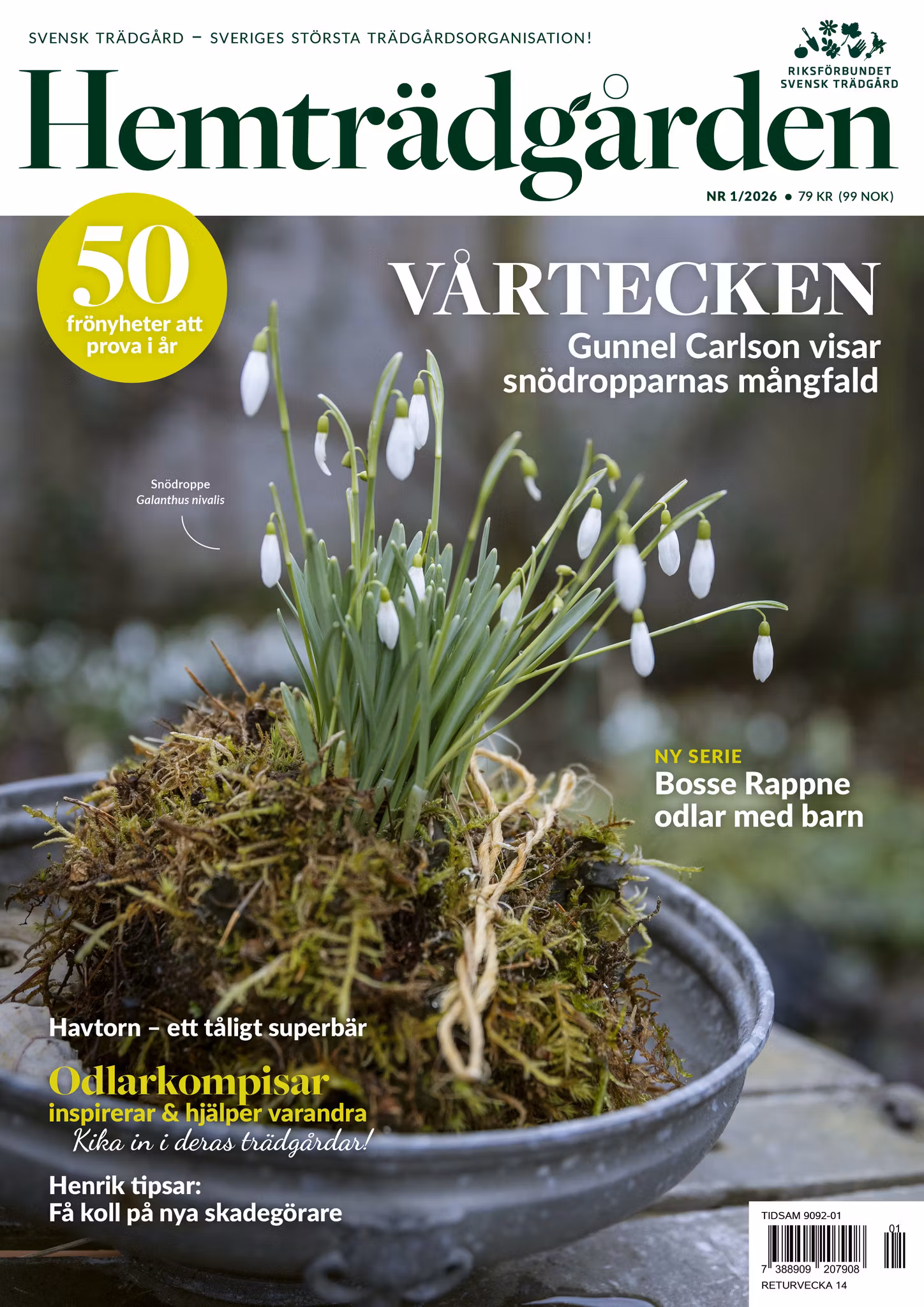 Tjuvstarta våren i Gunnel Carlsons snödroppssamling och få tips på nya nya grönsaker och blommor att odla och njuta av i sommar. Henrik Bodin hjälper dig att få koll på nya skadegörare och Åke Truedsson ger odlingsråd om ett riktigt superbär – havtorn. Vi inleder också en ny serie där Bosse Rappne odlar tillsammans med barn.