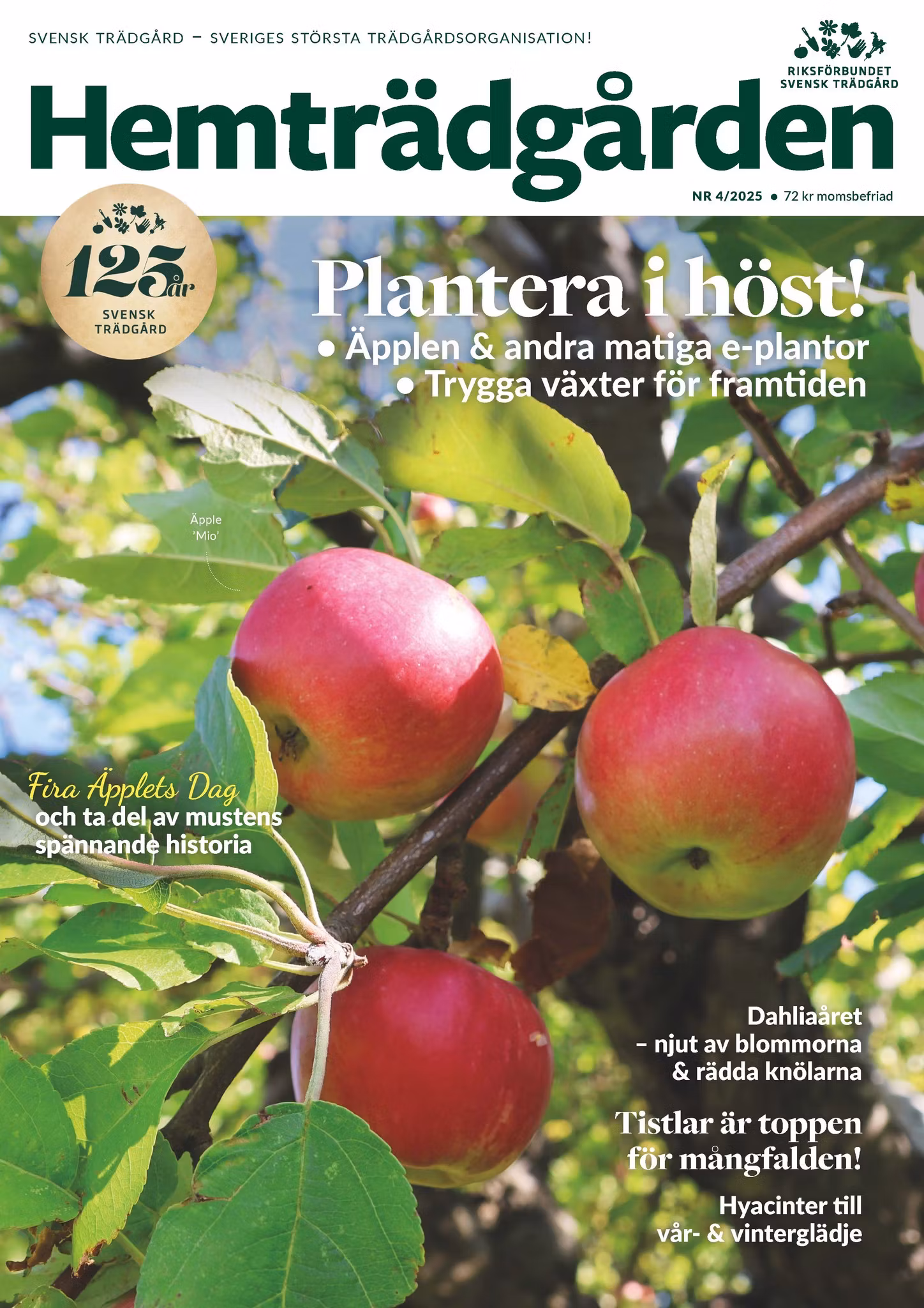I det här numret av Hemträdgården får du tips på e-märkta frukt- och bärsorter som passar att plantera i höst. Dessutom dahliornas årsalmanacka, hyacinter för vår- och vinterglädje och en artikel om blomsterkornell – ett underbart prydnadsträd med bonusbär som passar i en smakrik chutney.